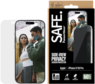 Everyone deserves to be SAFE.! You, your phone, and your private stuff! With this SAFE. by PanzerGlass® privacy screen protector made of 60% recycled glass, your on-screen secrets are safe from nosy neighbours next to you on the train, in the bar or in class. The privacy filter makes the content of your screen virtually invisible to everyone except the person right in front of the screen: YOU! The glass even has a smudge-free coating that reduces traces of fingerprints and grease. And the screen protection? Well, let’s put it this way: You no longer need to worry about dance floor mishaps, selfies gone wrong and your everyday fumbling, dropping and screen cracking!