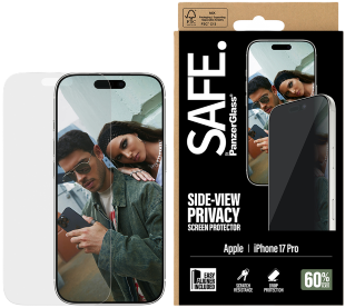 "Everyone deserves to be SAFE.! You, your phone, and your private stuff! With this SAFE. by PanzerGlass® privacy screen protector made of 60% recycled glass, your on-screen secrets are safe from nosy neighbours next to you on the train, in the bar or in class. The privacy filter makes the content of your screen virtually invisible to everyone except the person right in front of the screen: YOU! The glass even has a smudge-free coating that reduces traces of fingerprints and grease. And the screen protection? Well, let’s put it this way: You no longer need to worry about dance floor mishaps, selfies gone wrong and your everyday fumbling, dropping and screen cracking!