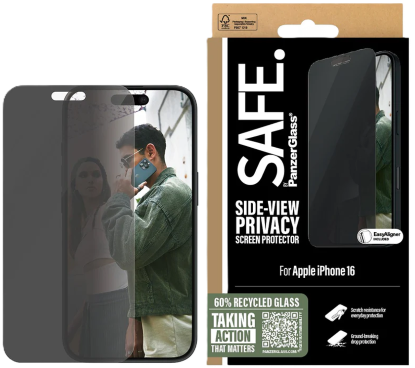 Powerful meets privacy! With this PanzerGlass® privacy screen protector made of 60% recycled glass, your personal info is safe from the prying eyes of people sitting next to you on the train, in the coffee shop, or at the office. The specially designed privacy filter renders the content of your screen virtually invisible to everyone except you. It even has a smudge-free coating that reduces traces of fingerprints and grease to give you a clear – but still private – view of your screen.