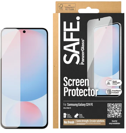 SAFE. is for real. SAFE. is for you. SAFE. is for dance floor mishaps, selfies gone wrong and your everyday fumbling, dropping and screen cracking. This SAFE. by PanzerGlass®️ screen protector made of 60% recycled material acts as a discrete airbag, protecting your phone by absorbing impacts and providing high-level scratch resistance without compromising the functionality and look of your device. It even has a smudge-free coating that reduces traces of fingerprints and grease.