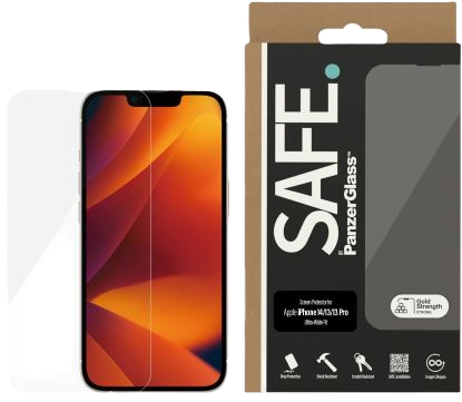The PanzerGlass™ screen protector for iPhone 14/13/16E with antibacterial coating has the same features as the original PanzerGlass™ and will protect your screen from scratches and bumps. The Standard Fit glass is reduced in size and features full silicone adhesive which gives perfect touch sensitivity whilst still delivering the superior PanzerGlass™ strength.